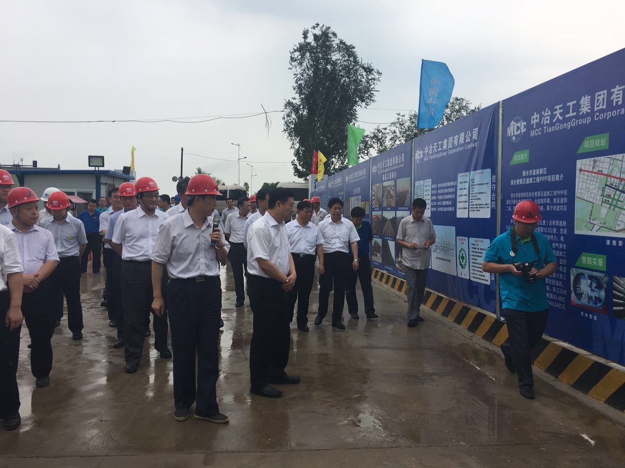 2017年7月15日建投集團(tuán)董事長趙學(xué)軍、副總經(jīng)理宋立民陪同住建部副部長倪虹、副省長張古江、省政府副秘書長康彥民、省住建廳副廳長李賢明、副市長王世坤、中冶集團(tuán)總裁張孟星等領(lǐng)導(dǎo)視察南外環(huán)綜合管廊現(xiàn)澆試驗(yàn)段,圖為視察現(xiàn)場。
