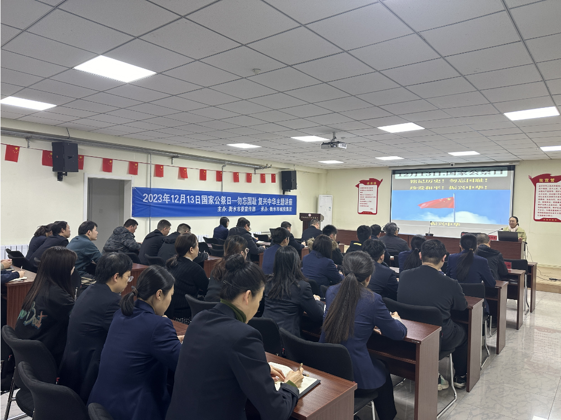 2023年12月13日是第10個國家公祭日,為銘記歷史、珍惜和平,市城投集團舉辦“勿忘國恥 復興中華”主題講座活動,特邀市委黨校教授、教務處長宋玲者為集團全體黨員、干部職工進行專題授課。