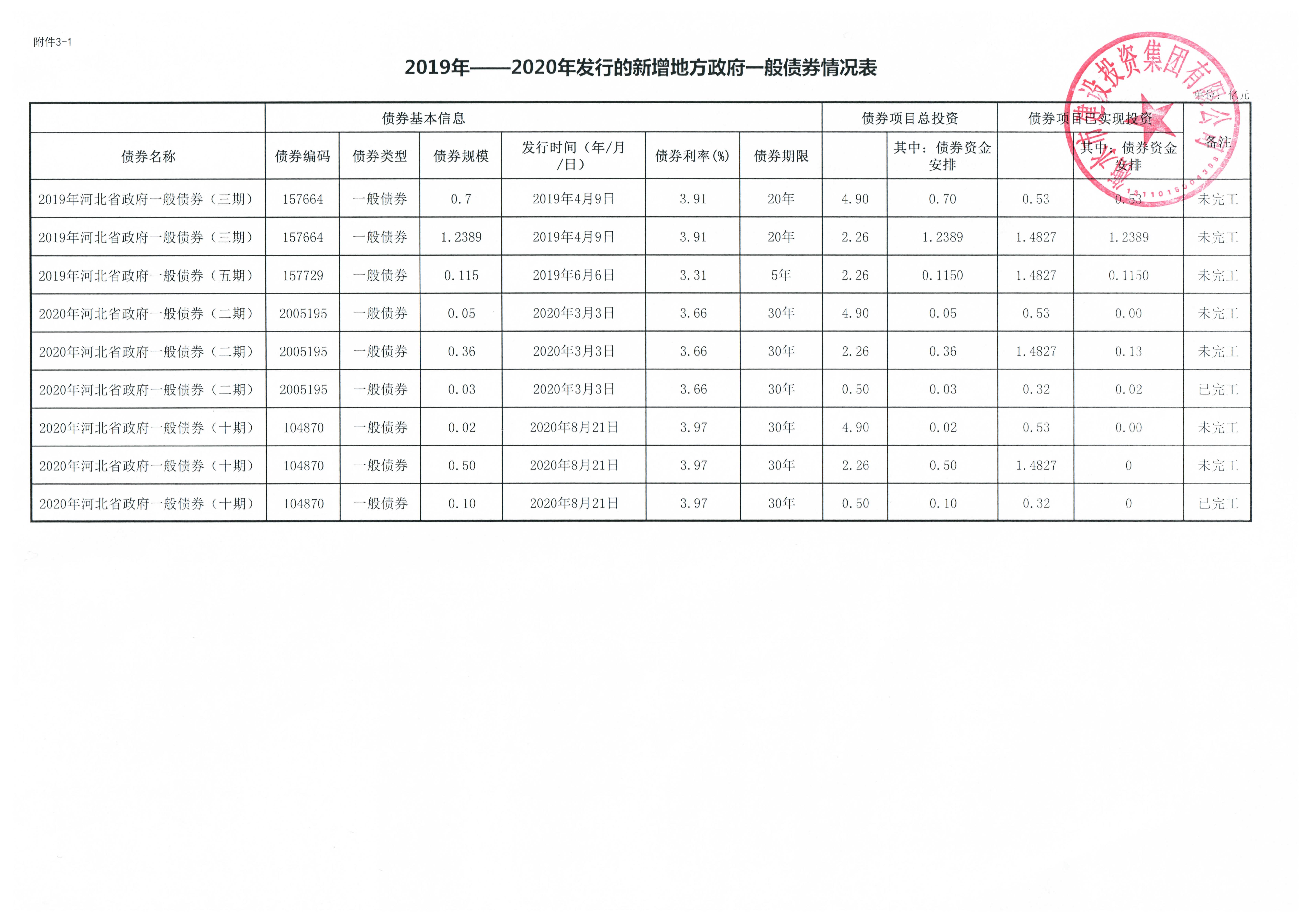 2019-2020年發行的新增地方政府債券情況信息公開
